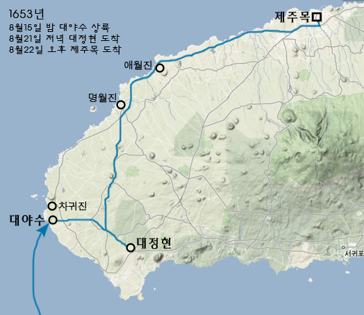착륙지점: 대야수(大也水), 지영록(知瀛錄)- 제주목사 이익태(李益泰)