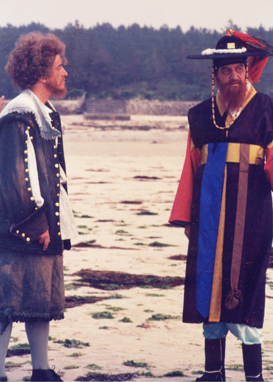 10월 29일 오후, 목사가 경리원과 키잡이, 이발사를 호출했다. 그들이 목사에게 갔을 때 길게 붉은 수염을 기른 사람을 발견했다. 목사는 그들에게 그가 어떤 사람이냐고 물었고, 그들은 그가 우리와 같은 네델란드 사람이라고 대답했다. 곧바로 목사는 웃으면서 이 사람은 조선 사람이라고 몸짓 또는 말을 했다. 서로간에 수 많은 대화와 몸짓을 한 후에야 여태껏 매우 난처한 입장으로 침묵하고 있던 그 사람은 우리가 누구이며 어디에서 왔는지 질문했다. 우리는 그에게 "암스테르담에서 온 네델란드 사람들이다"라고 응답했다. 나아가 어디에서 와서 어디로 가는 중이었느냐고 물었다. 우리는 대만에서 나가사키로 갈 작정이었다고 즉시 대답했다. 어쨌든 전능하신 하나님이 보호했다. 과거 5일간의 폭풍우 때문에 우리는 이 섬에 좌초되었고 지금 원만하게 해결되기를 기대했다.